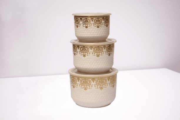 The 3 PCS Gold Print Bowl Set 483 showcases a stunning gold print design, perfect for adding elegance to your dining experience. Ideal for serving meals or snacks, this set combines durability with a touch of luxury, making it perfect for both everyday use and special occasions.
